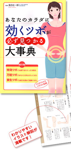ついに永岡書店から落合先生が監修いたしました 『あなたのカラダに効くツボが必ず見つかる大事典』が出版されました。 『生命の交差点』ともいうべき存在で、頭のてっぺんから足の先まで、体のありとあらゆるところに点在しているツボを“季節に合わせたツボ”や“月の満ち欠けに合わせたツボ”など思考を変えてご紹介しております。体の部位別のツボマップもサイズを大きくしてひと目で分かる一冊の本に仕上げてあります。 見ていただいた方にもツボや体に興味を持ってもらえれば嬉しい限りです。 |