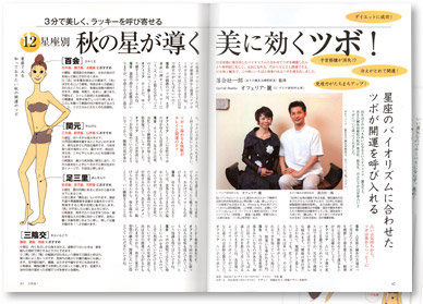 ●オフェリア麗さんとの12星座と鍼灸のコラボレーション ●12星座別に導き出した、バイオリズムに合わせてツボを刺激 ●あさひ鍼灸治療院の体験ルポ ●オフェリア・麗先生のあさひ鍼灸治療院による奇跡&開運体験